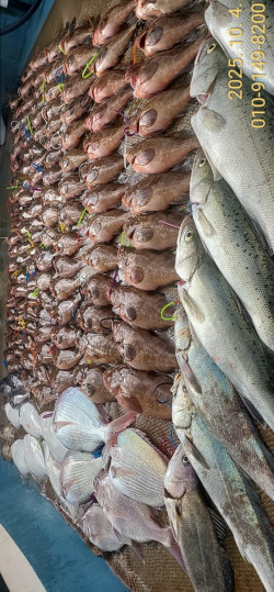 ♧ 남해안 생미끼외수질 개척.전문선사 ♤최남단,최단거리 포인트진입10월 2일 (목요일)(조과)붉바리.5짜 씨알좋은 우럭.점농어등. 3종세트추석선물.~넘지는 조황으로 즐거운 낚시. 했습니다 (조행기)오늘 바다는 마치 조사님들을 기다렸다는 듯, 시작부터 활기가 넘쳤습니다.포인트에 닿자마자 붉바리들이 연이어 올라와 배 위를 들썩이게 했습니다. 한두 마리로 끝나는 게 아니라 따박따박 이어지는 입질에 조사님들의 미소가 끊이지 않았습니다. 그 와중에 드디어, 기다리던 5짜 붉바리 등장! 강렬한 첫 저항부터 손끝으로 전해오는 묵직한 힘이 단숨에 긴장감을 최고조로 끌어올렸습니다.붉바리만 반겨준 게 아닙니다. 중간중간 점농어가 여러 마리 올라와 ‘역시 힘의 제왕’다운 질주를 보여줬고, 우럭까지도 붉바리와 함께 얼굴을 내밀며 손맛과 볼거리를 더해주었습니다. 오늘은 그야말로 붉바리를 중심으로 고르게 터져준 날이었습니다.특히 붉바리의 씨알이 전반적으로 아주 좋았던 게 인상적이었습니다. 단순히 한두 마리 굵은 씨알이 나온 게 아니라, 전체적으로 골고루 살이 통통 오른 사이즈라 조사님들 모두가 만족할 만한 조황을 만들었습니다.오늘 바다에서 함께 나눈 짜릿한 손맛과 환호성, 그 공감의 순간이 오래도록 기억에 남을 것 같습니다.오늘 함께해주신 조사님들 덕분에 바다는 더욱 뜨겁게 살아 숨쉬었고, 모두가 땀과 미소, 그리고 손맛으로 하나 된 시간이었습니다. 이런 순간들이 쌓여 낚시의 즐거움이 더 깊어지는 게 아닌가 싶습니다.“낚싯대 끝에서 전해오는 힘은, 단순한 물고기의 무게가 아니라 바다의 생명력이다.” ------------------박프로 였습니다 ♡대물붉바리.대물민어.대물점농어. 돼지우럭,왕볼락 찾아 GO~GO.!!!~~남녀노소 누구나즐기는 붉바리낚시예약은 홈페이지에서 ~~●자리는 먼저 예약하신데로 선택할수 있습니다기상이 좋으면 쭈욱 출항합니다. (홈페이지 참조)★ 궁금하신 점이 있으시면 정총무에게 전화주세요.☆문의 010 9149 8200●동영상조황.지난조황 밴드에서 보실수있습니다실시간☆예약은홈페이지에서 가능합니다.https://parkpro.sunsang24.com/ship/schedule_fleet/https://band.us/n/aba3A366LdG2m'거금박프로호' 밴드에 초대합니다.생미끼외수질. 타이라바 전용낚시선 밴드입니다.band.us #붉바리외수질 #외수질 #민어외수질 #농어 #우럭 #왕볼락 #쏨뱅이 #쏨뱅이 #거금박프로호#고흥붉바리 ===== 고흥 거금박프로호 =====예약문의 : 010-9149-8200오시는길 : 전남 고흥군 금산면 대신로 276 홈페이지 : http://parkpro.sunsang24.com/계좌안내 : 수협 / 0109-1498-2000 / 박양훈