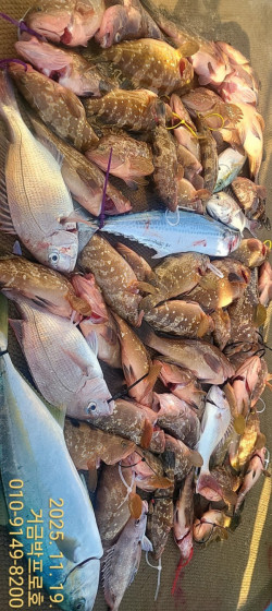 남해안 타이라바 메카 ♤최남단,최단거리 포인트진입11월 16일 (일요일)박프로입니다오늘 조황 올려드립니다.어마어마하게 나왔습니다 진열공간이 없을정도로 쏟아졌습니다.아침 초반부터 포인트마다 힘이살아있어 분위기가 달랐습니다.메타 농어.사이즈급 돌돔~쉴세없이 올라온 붉바리.참돔~바닥 찍고 두세 번 감아 올리면 툭- 하고 들어오는 특유의 참돔,붉바리 입질이 계속 이어졌고,빠르게 옮겨 다니며 활발한 어군을 찾아다니는 재미가 확실했습니다.전체적으로 30 이상 준수한 사이즈가 주류를 이뤘고,중간중간 힘 좋은 개체들이 로드를 크게 꺾어주며조사님들 손끝에 긴장과 만족을 동시에 안겨드렸습니다.오후 들어 조류가 조금 죽는 구간에서도포인트 교체마다 꾸준한 반응이 이어져“오늘은 진짜 쉬어갈 틈이 없네”라는 말이 나올 정도로전반적으로 잘 나와준 하루였습니다.집중해주신 조사님들 덕분에 모든 포인트에서알찬 손맛과 풍성한 조과를 챙길 수 있었습니다.늘 찾아주시는 마음 잊지 않겠습니다.오늘 함께하신 조사님들 고생 많으셨고,다음 출항때에도 이 기세 모아서 대물 사냥 이어가겠습니다 . "물때는 기다리지만 기회는 기다리지 않는다. -----------박프로 였습니다 예약은 홈페이지에서 ~~●자리는 먼저 예약하신데로 선택할수 있습니다기상이 좋으면 쭈욱 출항합니다. (홈페이지 참조)★ 궁금하신 점이 있으시면 정총무에게 전화주세요.☆문의 010 9149 8200●동영상조황.지난조황 밴드에서 보실수있습니다실시간☆예약은홈페이지에서 가능합니다.https://parkpro.sunsang24.com/ship/schedule_fleet/https://band.us/n/aba3A366LdG2m #붉바리외수질 #외수질 #민어외수질#농어 #우럭 #왕볼락 #쏨뱅이 #쏨뱅이#거금박프로호#고흥붉바리 #참돔타이라바 #거금도 #고흥선상낚시 #고흥바다낚시 #남해안바다낚시 #루어 #거문도 #여서도 #참돔조황#백도#고흥거금박프로피싱#녹동거금박프로피싱 #선상참돔낚시#남해생활낚시 ===== 고흥 거금박프로호 =====예약문의 : 010-9149-8200오시는길 : 전남 고흥군 금산면 대신로 276 홈페이지 : http://parkpro.sunsang24.com/계좌안내 : 수협 / 0109-1498-2000 / 박양훈